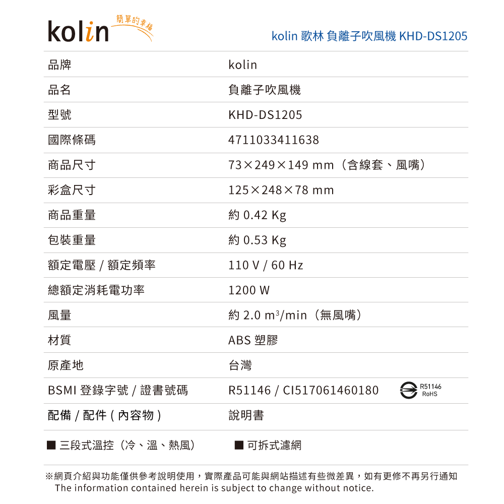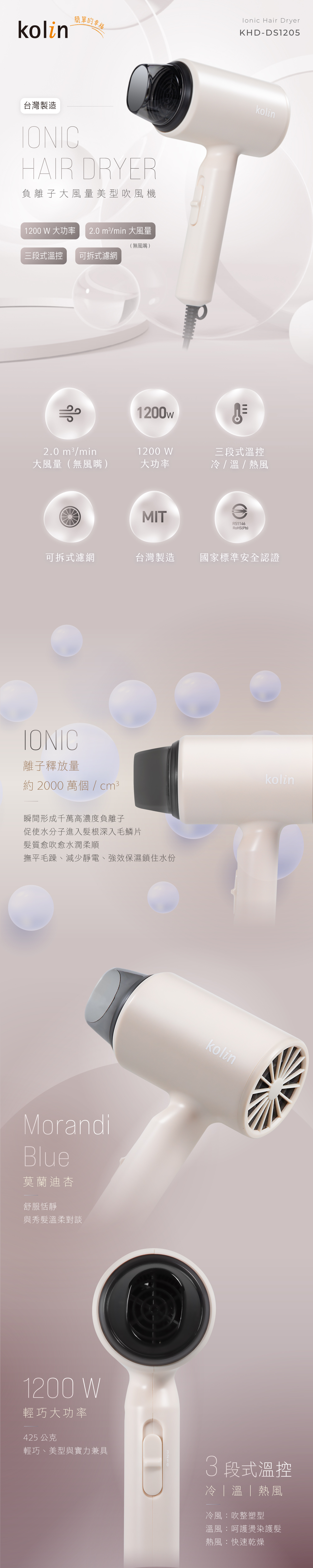 6. 三段式溫控選擇 (冷 , 溫 , 熱風 )