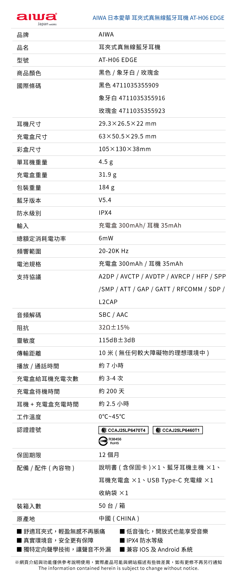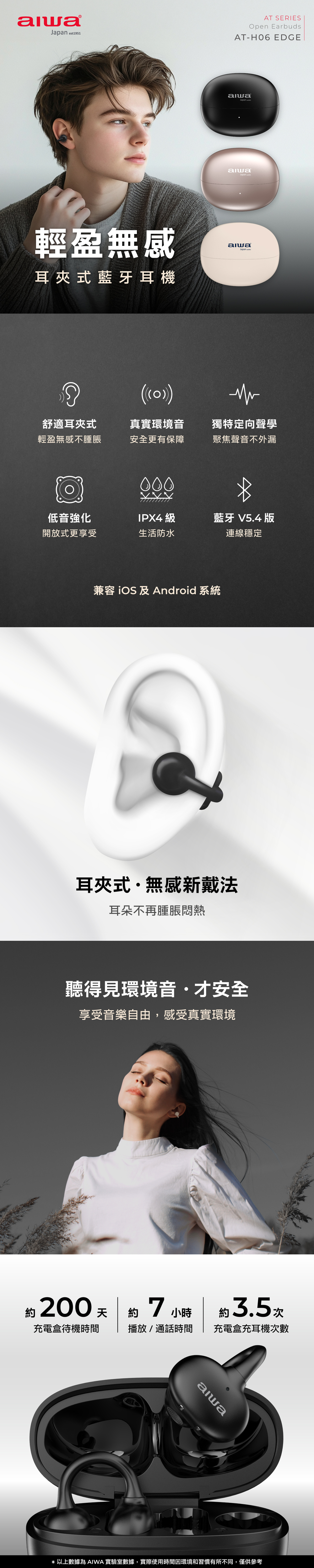 AIWA 愛華 耳夾式真無線藍牙耳機 AT-H06 EDGE