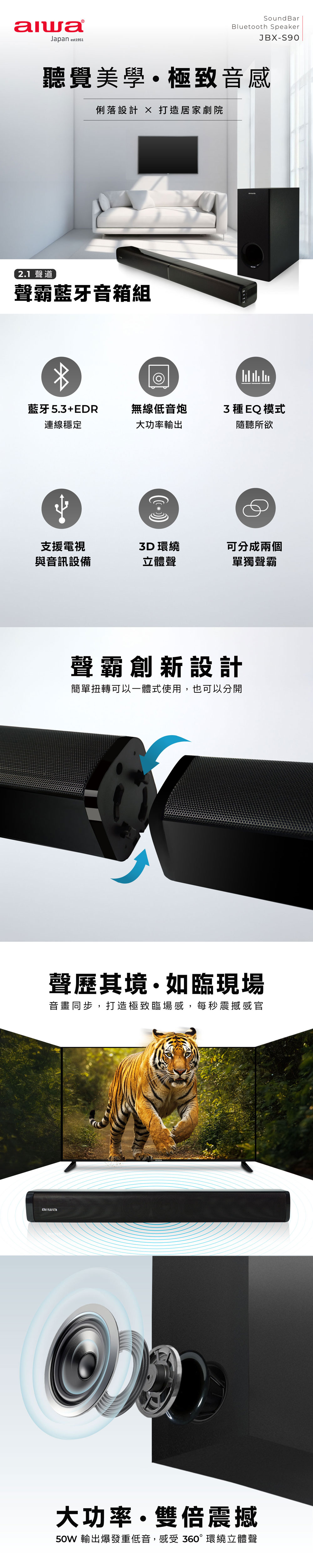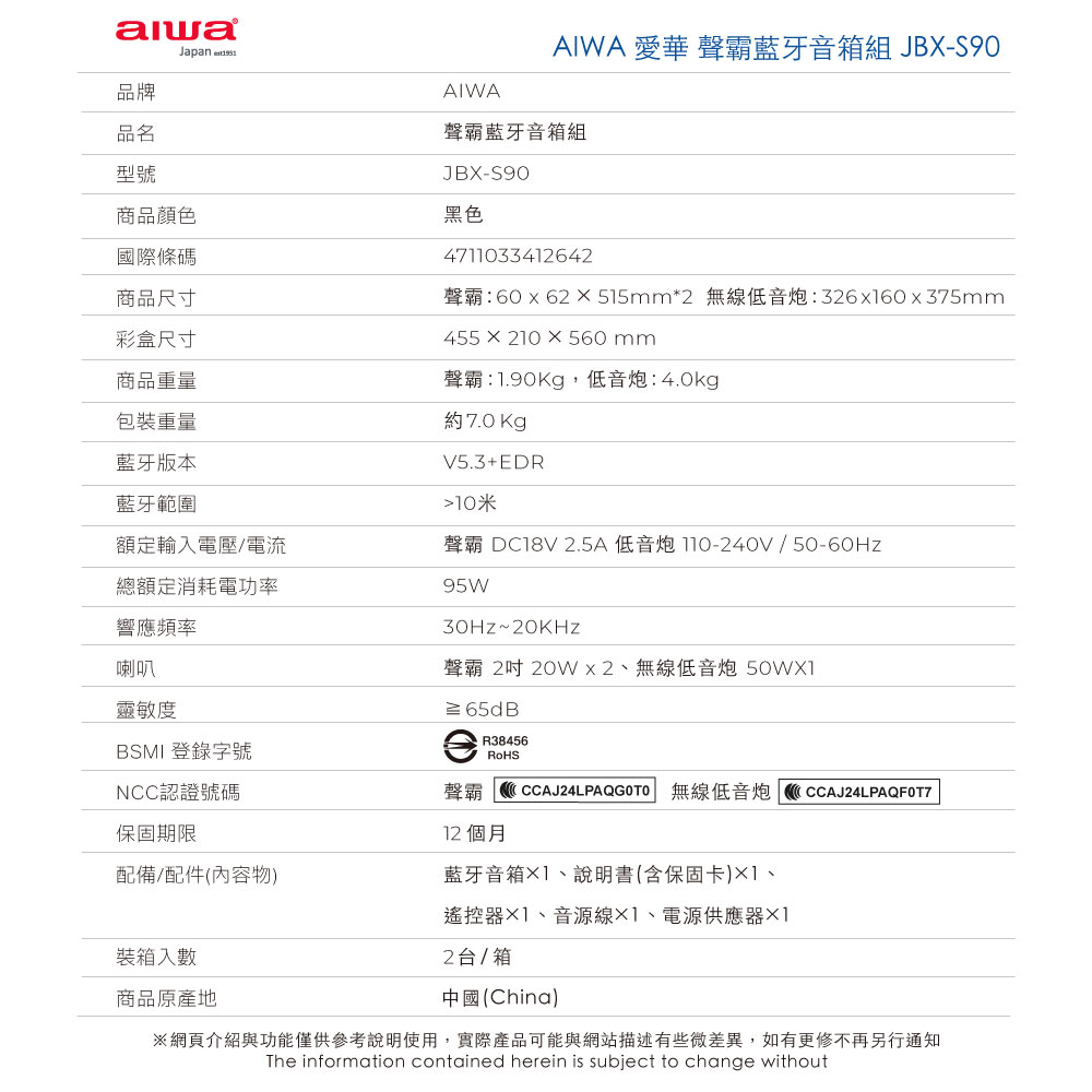 AIWA 愛華 聲霸藍牙音箱組 JBX-S90