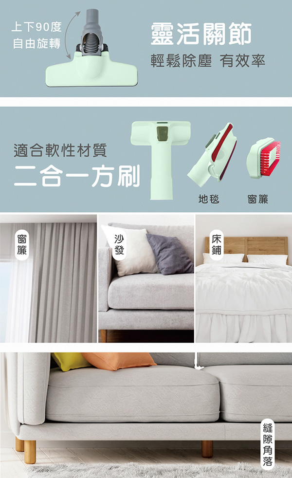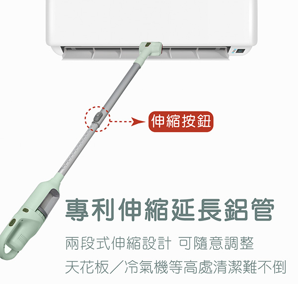 · 符合人體工學把手 · 一鍵倒塵設計 · 專利的伸縮延長管 · 400W 超靜音馬達 · 輕巧多功能 · 採用 HEPA 的高端過濾系統